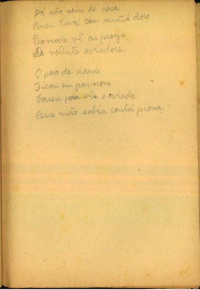Franklin Joaquim Cascaes (1908–1983), nascido em Florianópolis, desde a infância interessou-se pela cultura local, a qual serviu como inspiração para sua obra. As histórias que ouviu e as celebrações populares que acompanhou marcaram profundamente sua produção artística. Atuando como escritor, escultor, desenhista, ceramista e folclorista, documentou e recriou o imaginário açoriano catarinense por meio da arte e da escrita. Iniciou sua trajetória artística aos 38 anos, conciliando-a com a carreira de professor de arte que durou quase 40 anos. Ele valorizou o ensino da cultura local, utilizando métodos inovadores como a oralidade e expressões artísticas populares para despertar o interesse dos alunos e preservar as tradições. Sua produção foi extensa, com mais de 2800 itens catalogados, incluindo esculturas, desenhos, textos, gravações e manuscritos, alguns ainda inéditos. Seu trabalho aborda temas como o papel da mulher na sociedade local, o misticismo, a cultura negra na ilha de Santa Catarina e as transformações sociais e ambientais da região. Sua obra literária inclui 24 narrativas com forte presença da linguagem popular, além de cartas e poemas. Seu livro O Fantástico na Ilha de Santa Catarina reúne contos místicos baseados na tradição oral. Seus poemas têm uma forte conexão com suas esculturas, como é o caso da obra apresentada nesta edição, o Caderno 91. Nesse caderno, o Professor Franklin Cascaes deixou 5 manuscritos, entre eles, o poema em homenagem ao escritor francês Antoine de Saint-Exupéry, autor de O Pequeno Príncipe. Entre as décadas 1920 e 1940, Antoine de Saint-Exupéry foi aviador, piloto do Aero Postales, correio francês, que tinha Florianópolis na rota de entrega de correspondências entre Paris e Buenos Aires, na Argentina. O campo de pouso em Florianópolis ficava localizado no bairro Campeche, e o escritor recebeu, de pescadores e moradores do bairro, o apelido carinhoso de Zé Perri, os quais contavam muitas histórias sobre suas visitas nessa época. Como as histórias desse aviador, contadas por pescadores, fazem parte da tradição da ilha, Franklin Cascaes não poderia deixar de homenagear também um visitante querido do povoado da ilha da magia. Vejamos o poema em homenagem ao “Zé Perri”, denominado “Versos sobre um avião”: